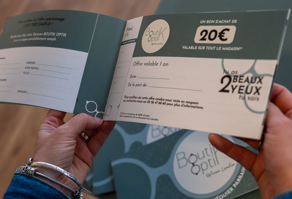 Pour chaque nouveau client parrainé avec dossier validé, votre filleul reçoit un bon d’achat de 20 € valable sur tout le magasin.